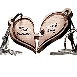 Herz Puzzle Echtholz Schlüsselanhänger – 2 teilig – schöne Geschenkidee für Paare – vorgraviert mit Text: Für immer … und ewig